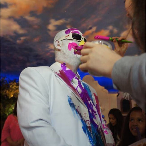 The Human Canvas man starts out all white and lets guests paint him from top to bottom.