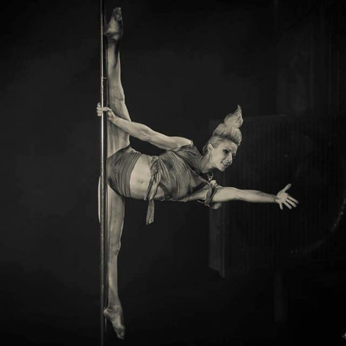 Watch as our impressive performer scales the heights of the pole with great skill.